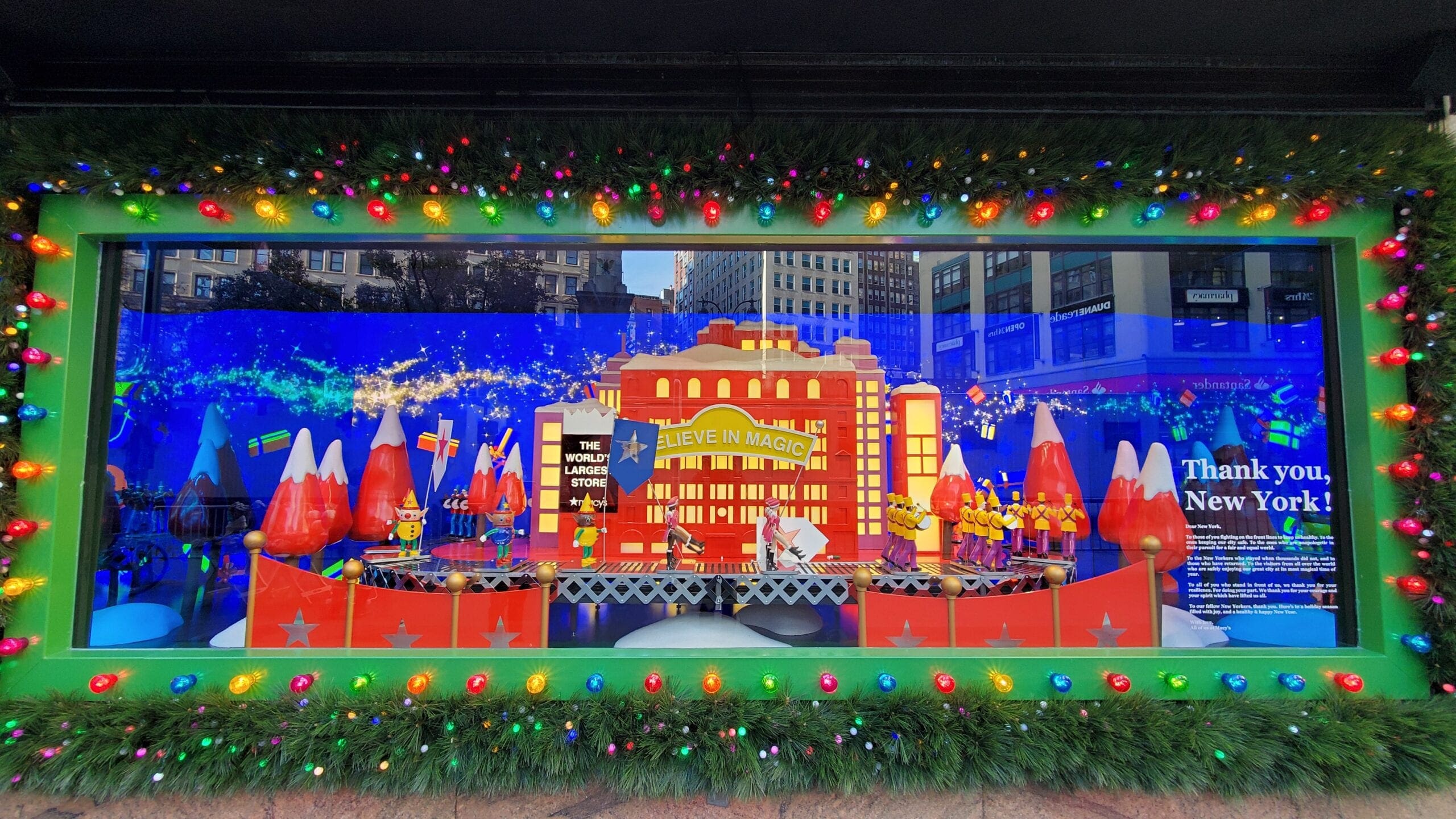 Macy’s (151 W34th Street, entre 7th Avenue e Broadway). Aqui, além da vitrine, a loja tem o Macy’s Santaland no 8º andar que atrai mais de 300 mil pessoas por ano. Tem a presença do Papai Noel para ouvir os desejos e tirar fotos com as crianças. Normalmente é cheio,. Uma dica: chegue cedo para evitar as filas. A temporada sempre começa em novembro, quanto antes você for, melhor, pois pertinho do natal é ainda mais cheio.